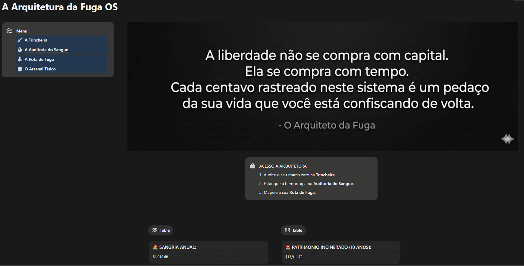 A infraestrutura digital para mapear a sua transição, auditar o seu sangramento financeiro e executar a sua saída.